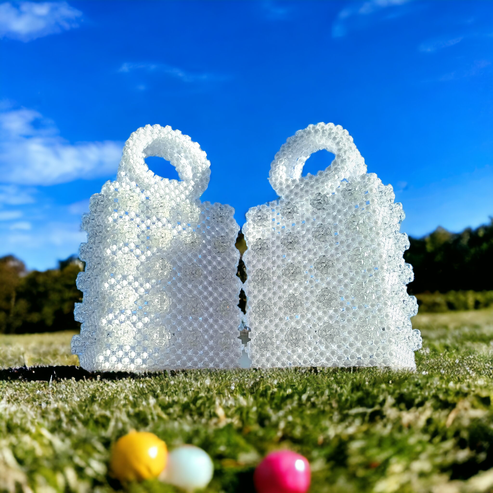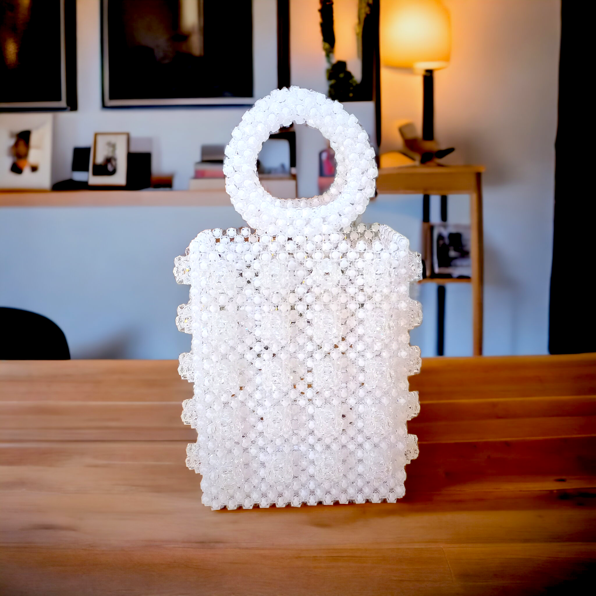 This handcrafted beaded bag, features a distinctive grid-set cluster design. Meticulously arranged with acrylic crystals that exudes both elegance and sophistication. Inside, you’ll find a delicate satin pouch. Perfect for weddings, soirées, or adding a statement to your everyday ensemble, this bag seamlessly blends artistry with functionality.​