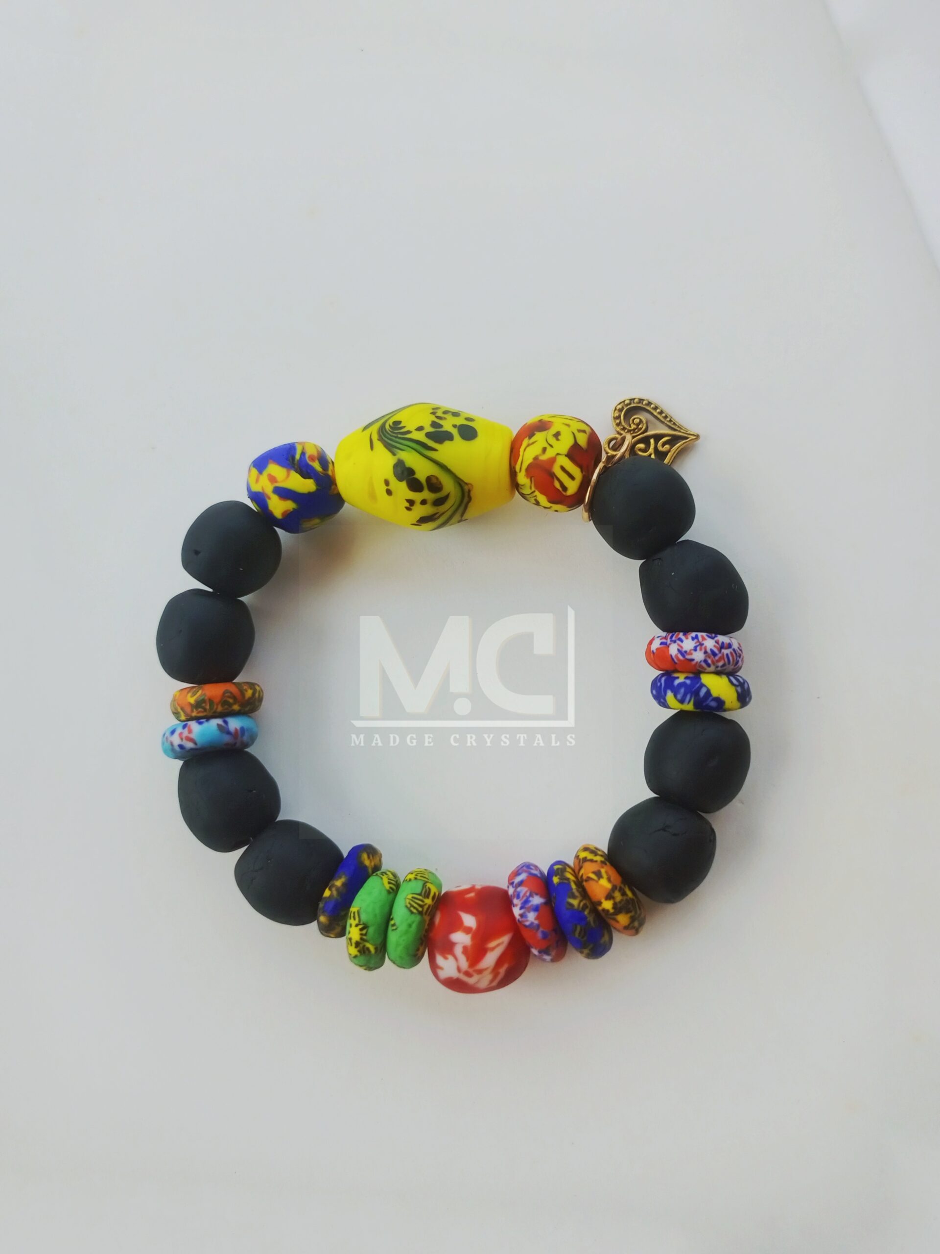 Material Composition Glass Beads, and Elastic String, Adinkra Pendant